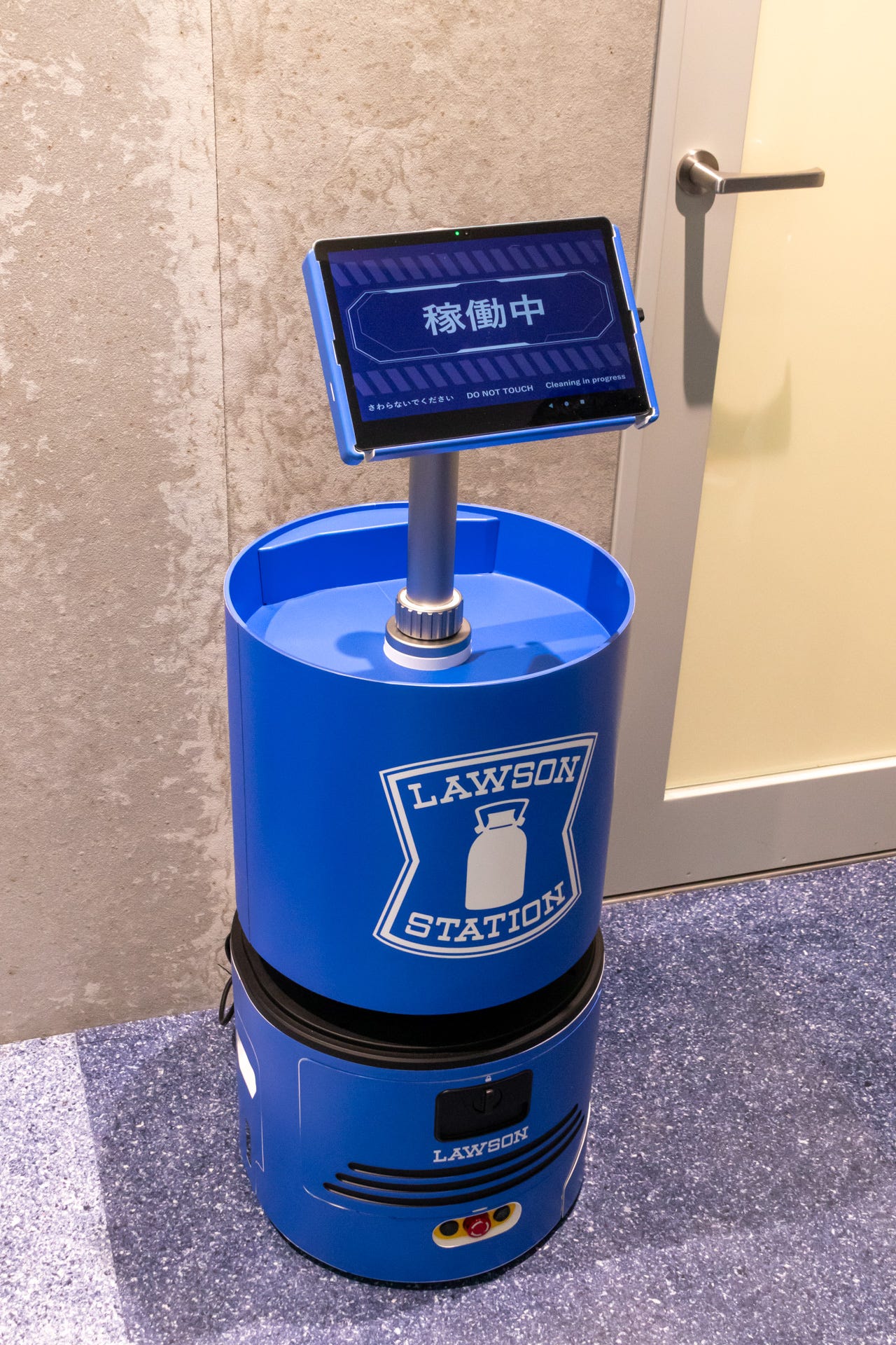 An automatic cleaning robot that cleans the store in about an hour. It does everything from suction to wiping with water.